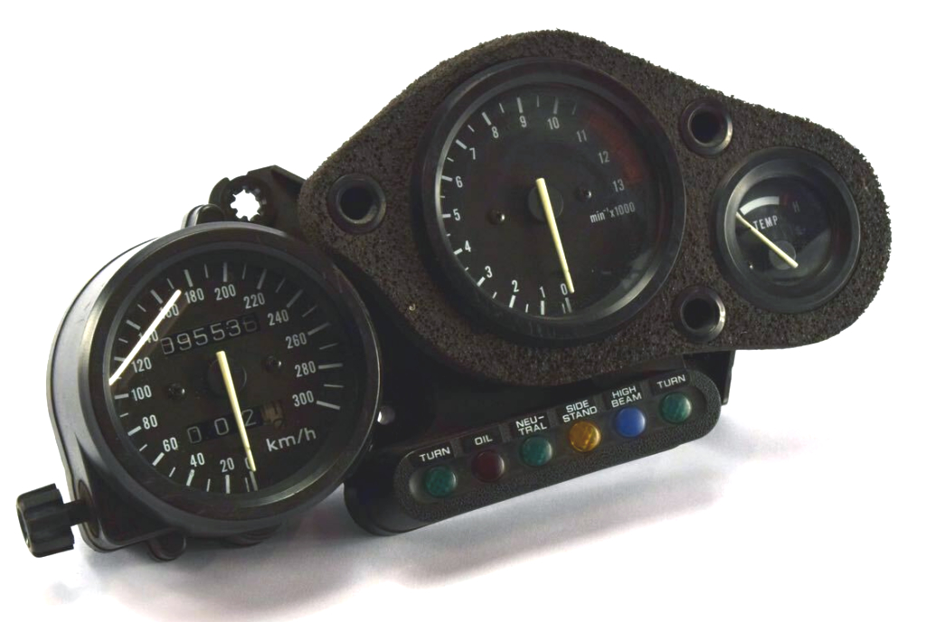 Sourcing the rare Nippon Seiki instruments typically found on pukka HRC racing bikes was prohibitively expensive. To replicate something that closely resembles the original FWS cockpit we chose the 1994 Fireblade instrument cluster. The speedo was a separate component that could be removed and the back cover trimmed to suit. A mounting bracket was designed and machined to suit.