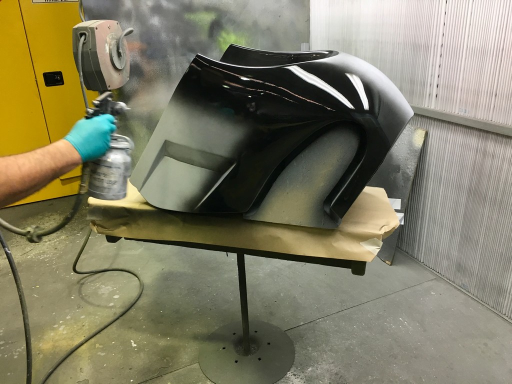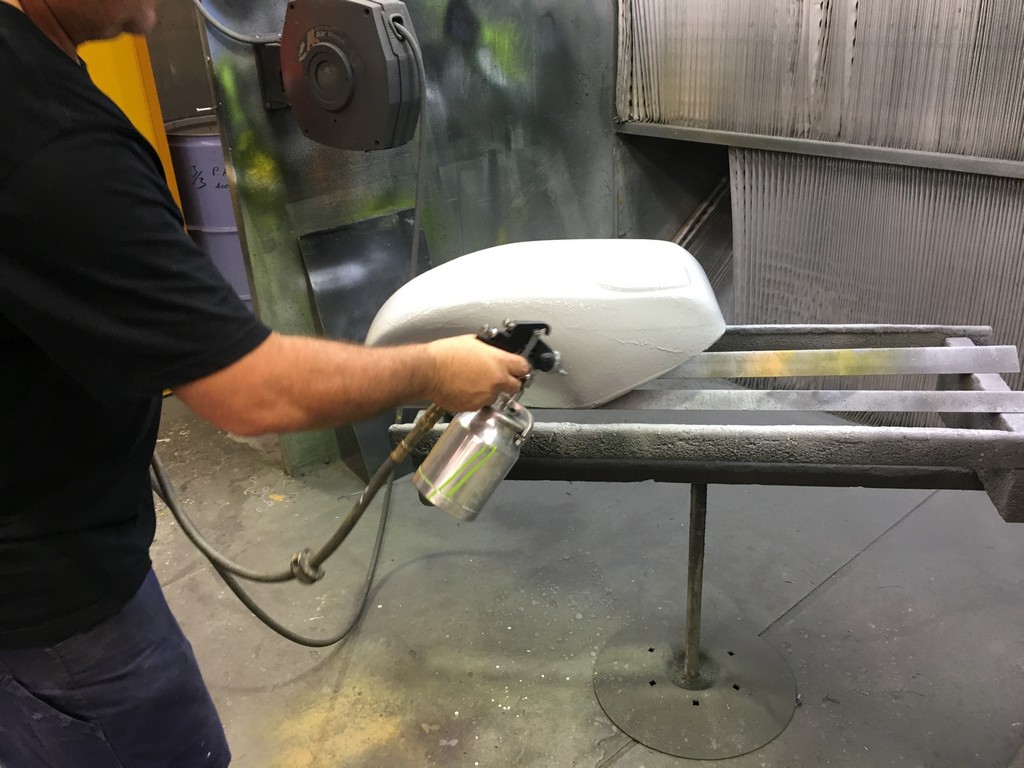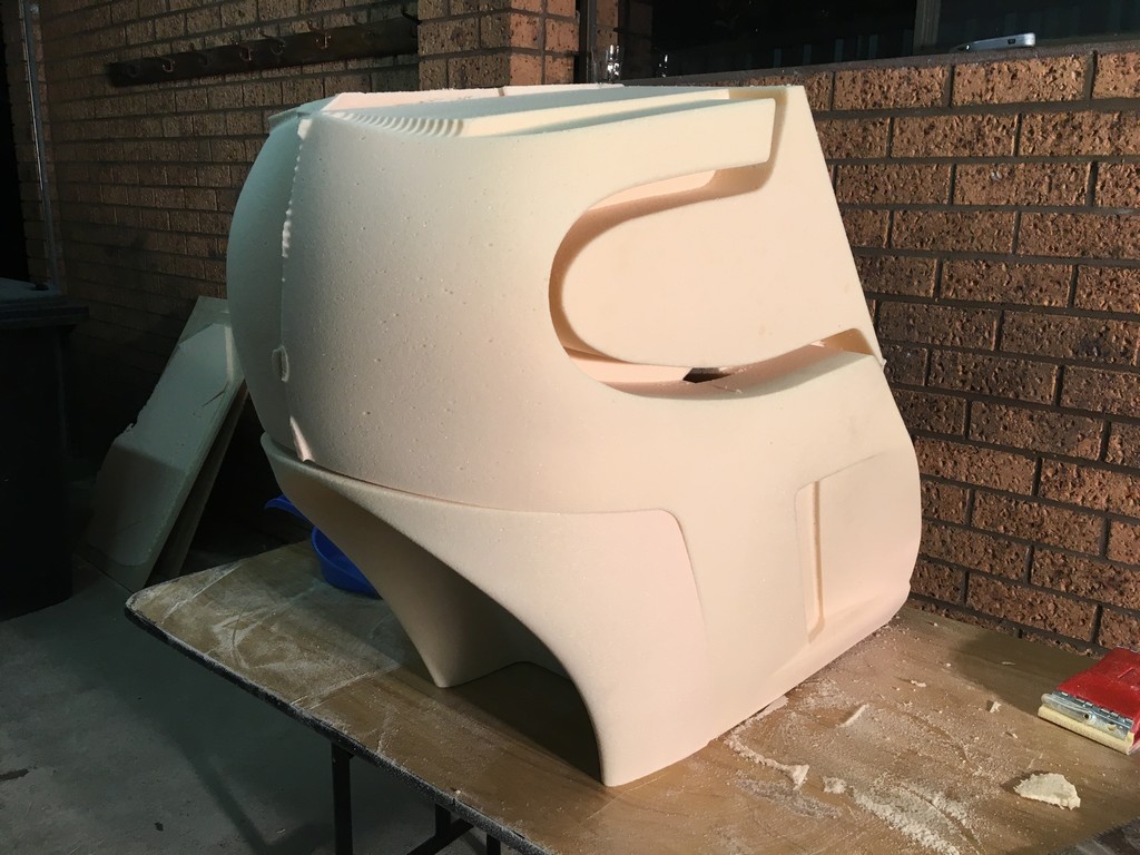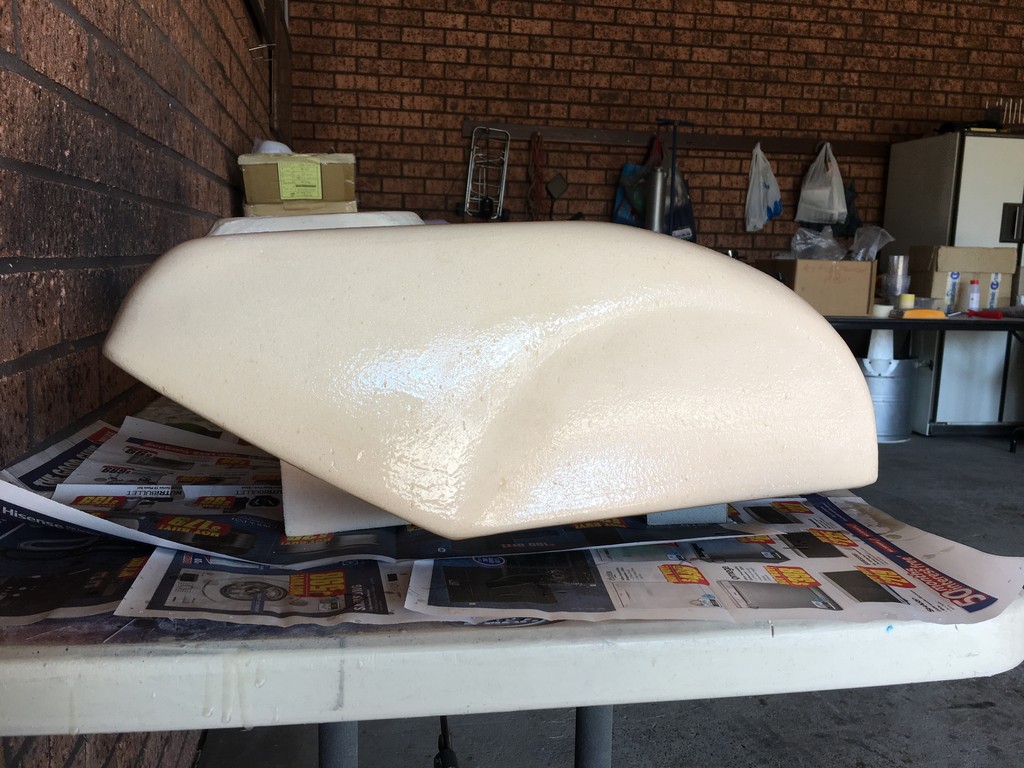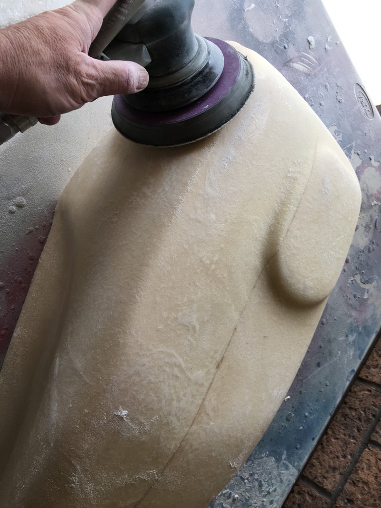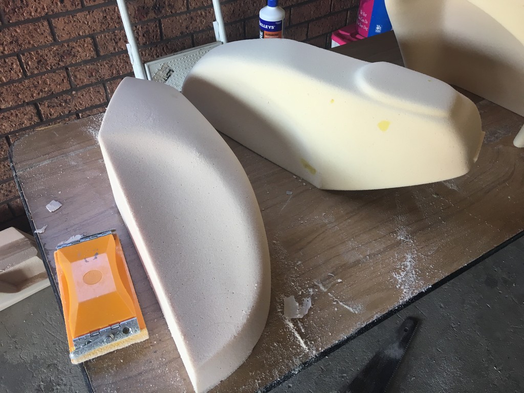 The quality of the surface finish of the final parts is highly dependant upon the quality of the plugs. To obtain a high quality finish the plugs were coated with a layer of fibreglass surface tissue and polyester resin. This provided a hard skin over the relatively soft foam which made the plugs easier to work with. At this point the fine details of the plugs were refined with lots of hand shaping, sanding, filling, priming and painting. I should emphasise lots and lots of shaping, sanding, filling, priming and painting. It was a very laborious, tedious and dusty part of the project but at the same time a critical part that had to be done right.