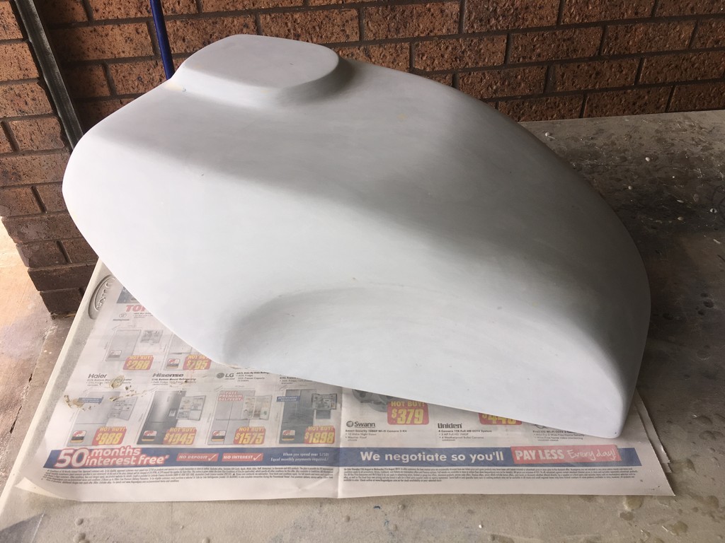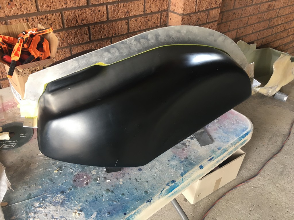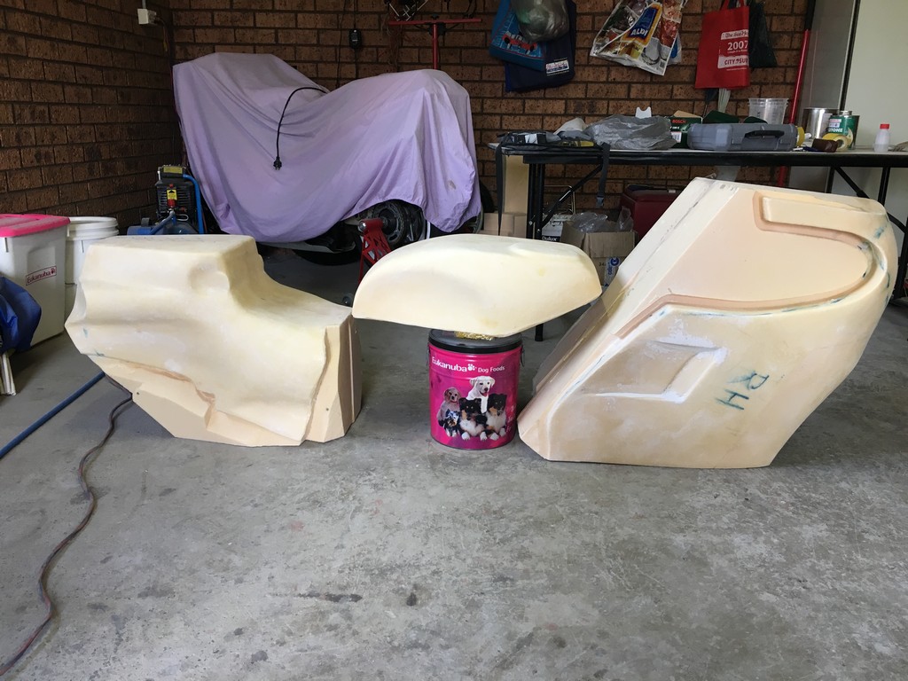 All the above work was done in house and by the time the plugs and moulds were completed we were thoroughly fibreglass fatigued! So therefore, we treated ourselves to a break from the fibres and fumes and outsourced the manufacturing of the laminates to a specialist fibreglass company in Sydney. When we got the parts back all that was left to do on the main fairing was to create a lap joint to fit the upper cowl to the bellypan.