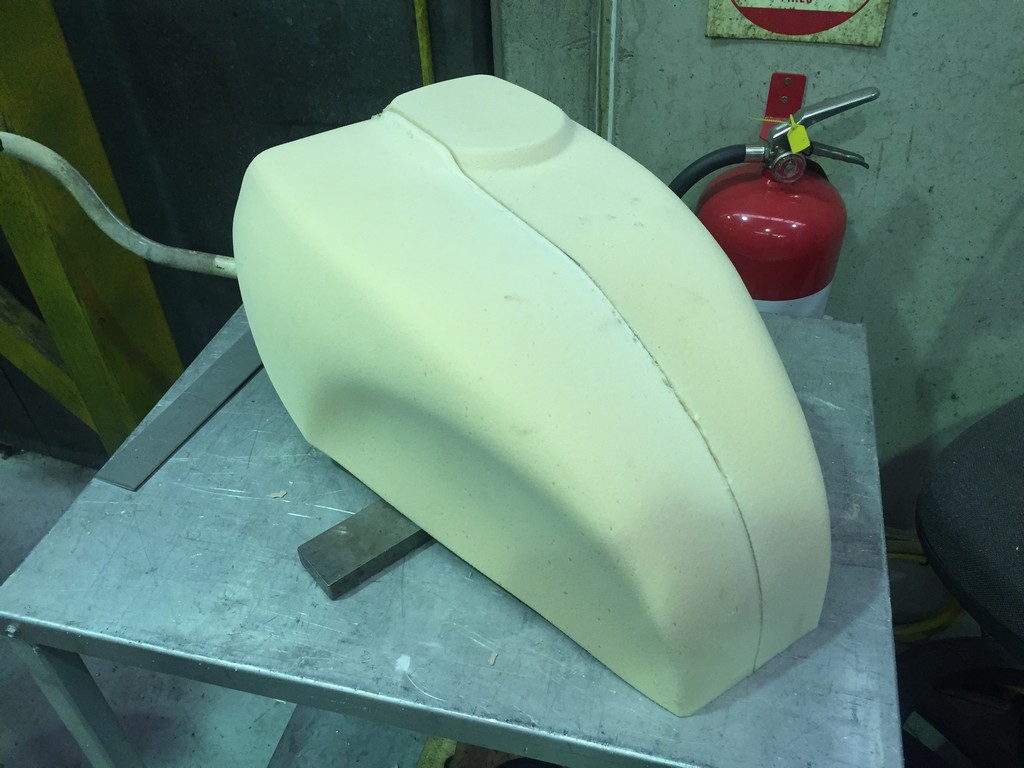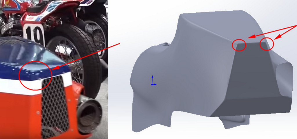 We’re quite happy with the way the bodywork parts turned out considering we had nothing to work with except for some images on the internet. Despite pouring over the images with a fine tooth comb a particular detail popped up that we hadn’t noticed before. In this case we noticed that the forward seat mount isn’t flat like we had made it but in fact had two recesses for the mounting bolt holes. After spending so much time on the bodywork development process we could’ve easily dismissed this oversight and left the seat as it was.