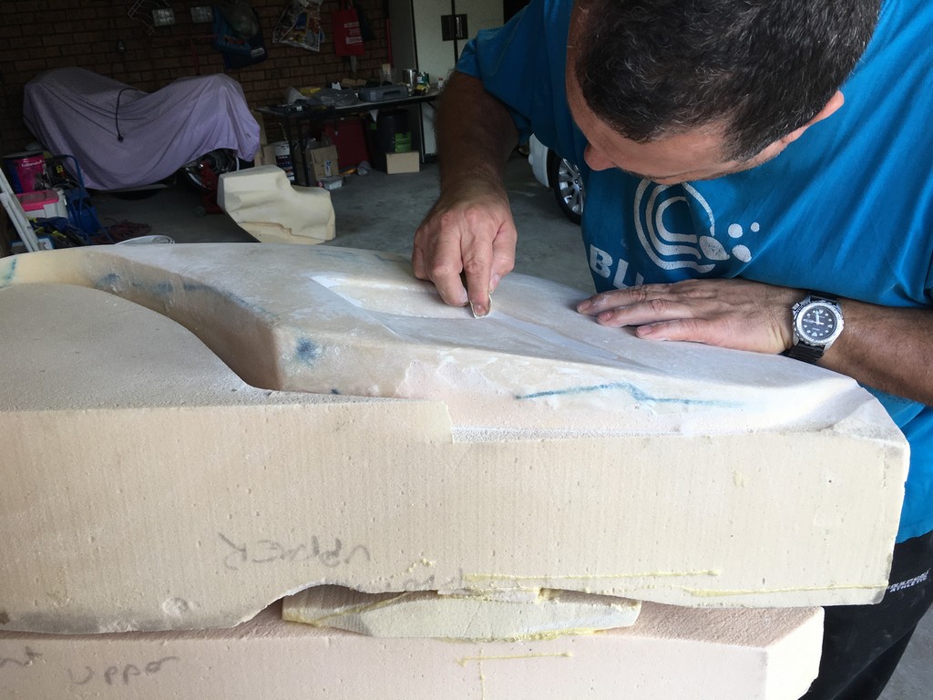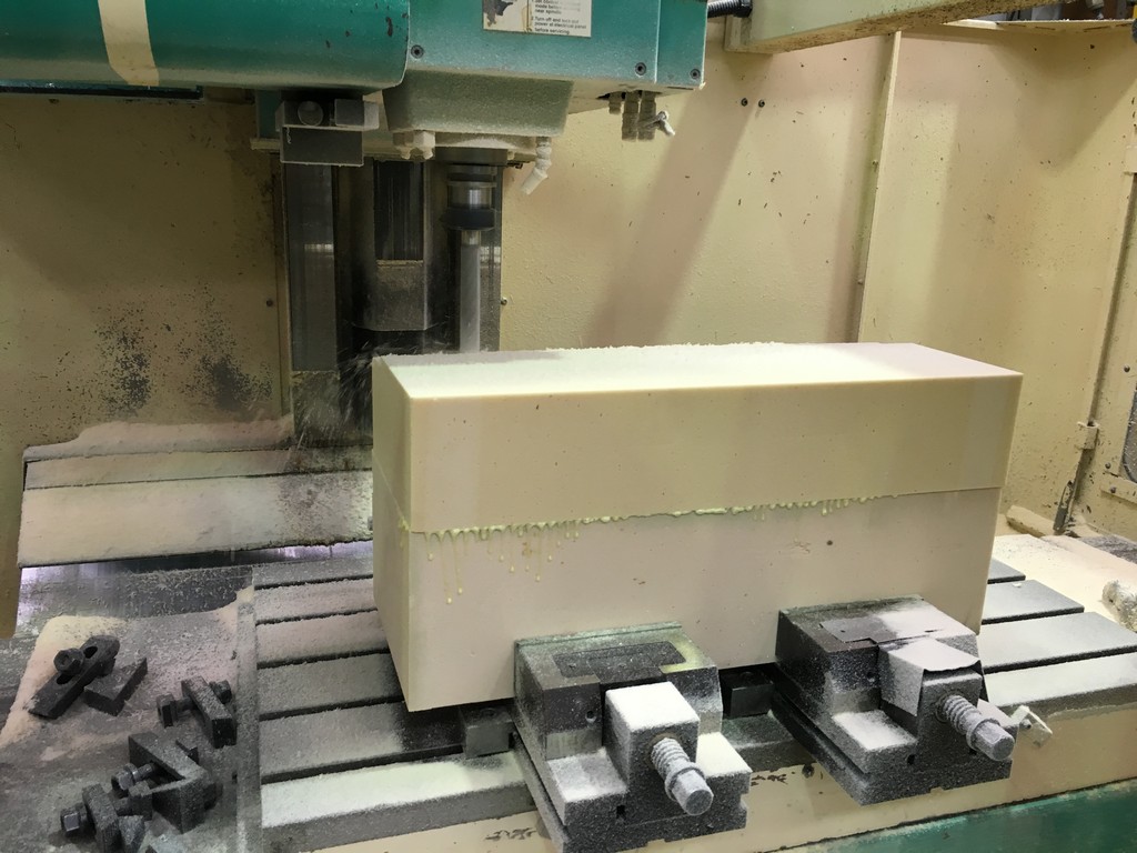 Once the modelling was complete the next step in the process involved machining physical plugs of the CAD models from rigid urethane foam. Foam blocks were set up in a CNC machining centre and carved out as per the CAD design.