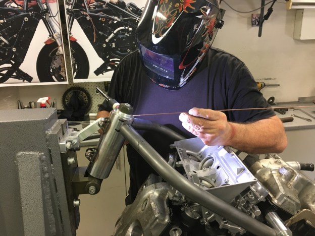 Now that we’ve established the basic chassis parameters it was time to start building. We began with making and setting up the steering head tube, swingarm pivot and suspension link parts.